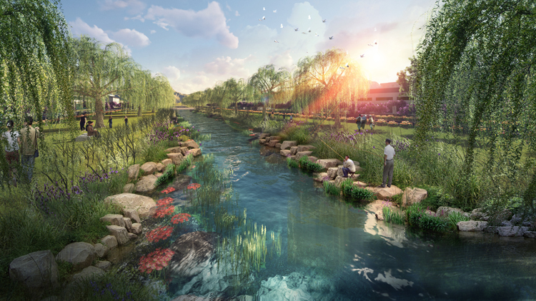 雲(yun) 夢縣西大渠18.8KM河道綜合整治,工程涵蓋:截汙縣城管網完善、鄉(xiang) 村汙水收集處理、河道清淤、 河道生態修複、護坡、濱水景觀、步道及綠化。